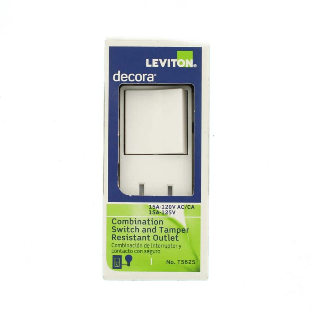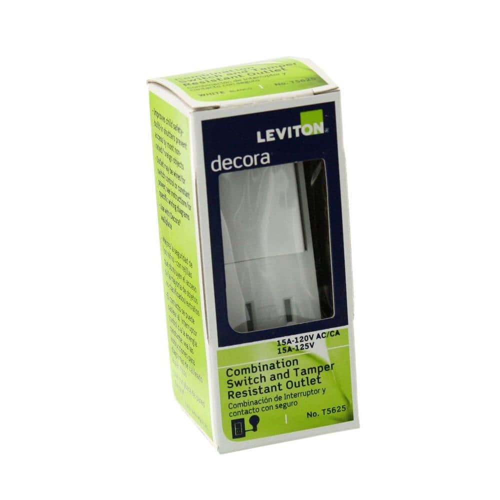 Leviton Decora 15 Amp Tamper-Resistant Combo Switch and Outlet, White (R62-T5625-0WS)