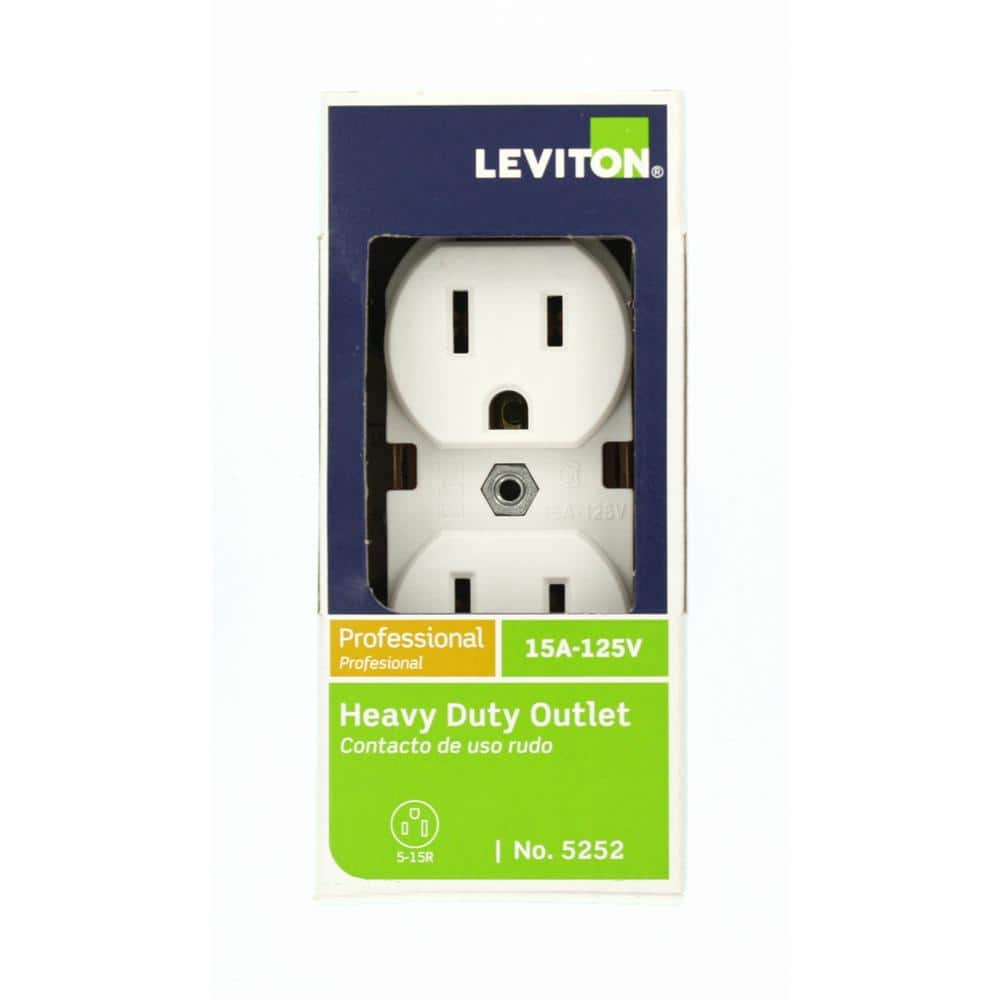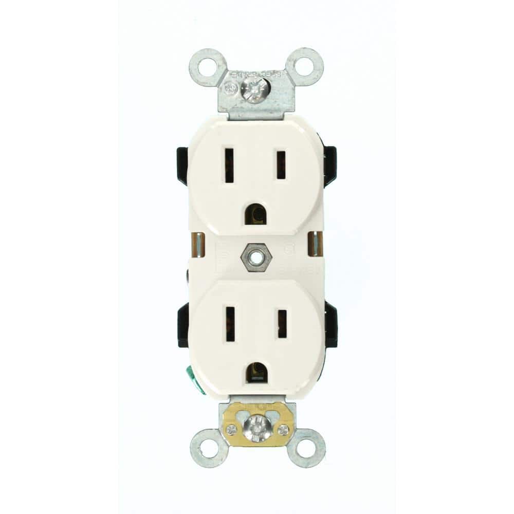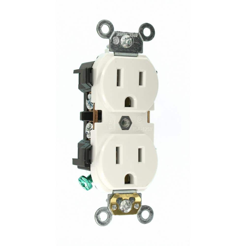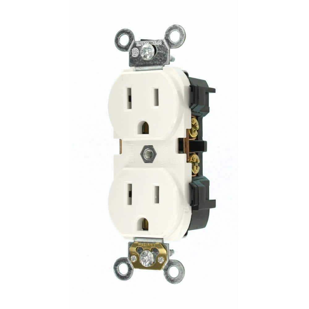 Leviton 15 Amp Industrial Grade Narrow-Body Duplex Outlet, White