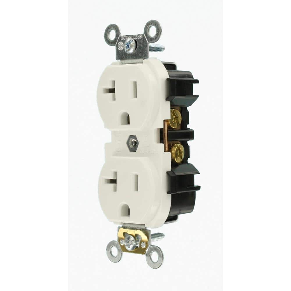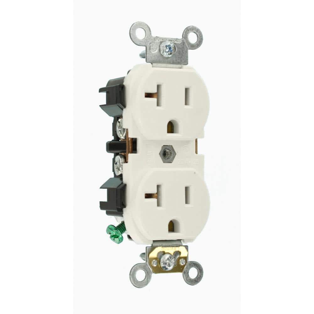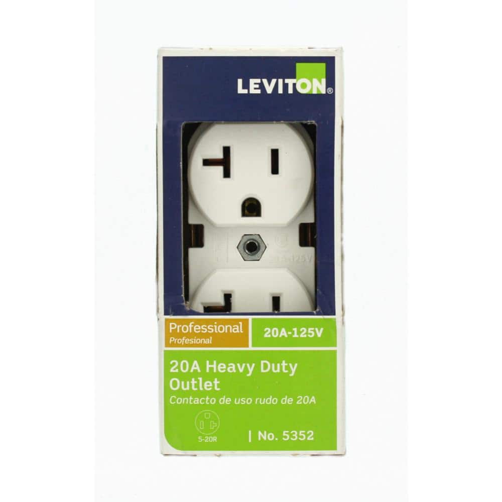 Leviton 20 Amp Industrial Grade Heavy Duty Self-Grounding Duplex Outlet, White (NEMA 5-20R)