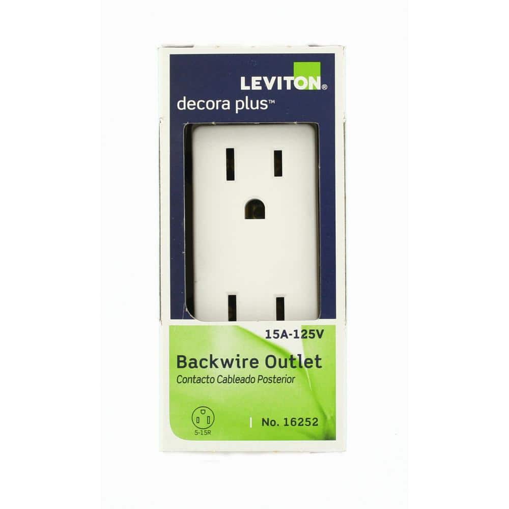 Industrial-grade Leviton Decora Plus duplex outlet delivers reliable 15A/125V power in a sleek white design. Built for demanding commercial environments with back and side wiring options and a durable thermoplastic face and steel strap.