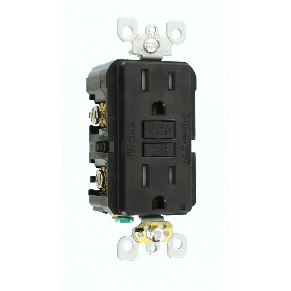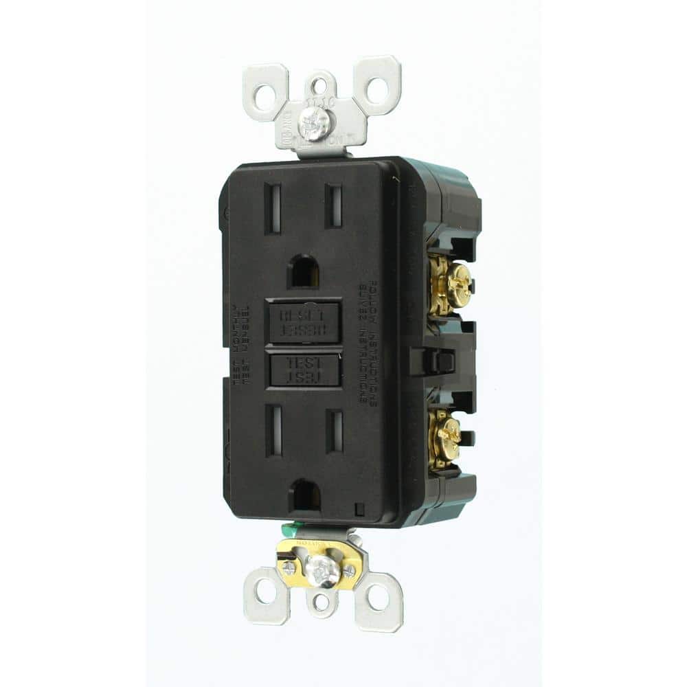 Leviton 15 Amp 125-Volt Duplex SmarTest Self-Test SmartlockPro Tamper-Resistant GFCI Outlet, Black (GFTR1-KE, R95-GFTR1-0KE)