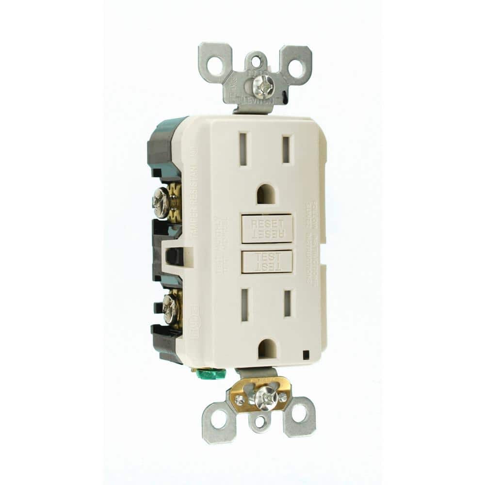 Leviton 15 Amp 125-Volt SmartlockPro SmarTest Tamper-Resistant GFCI Duplex Outlet, Light Almond (GFTR1-KT)