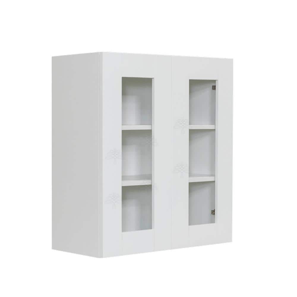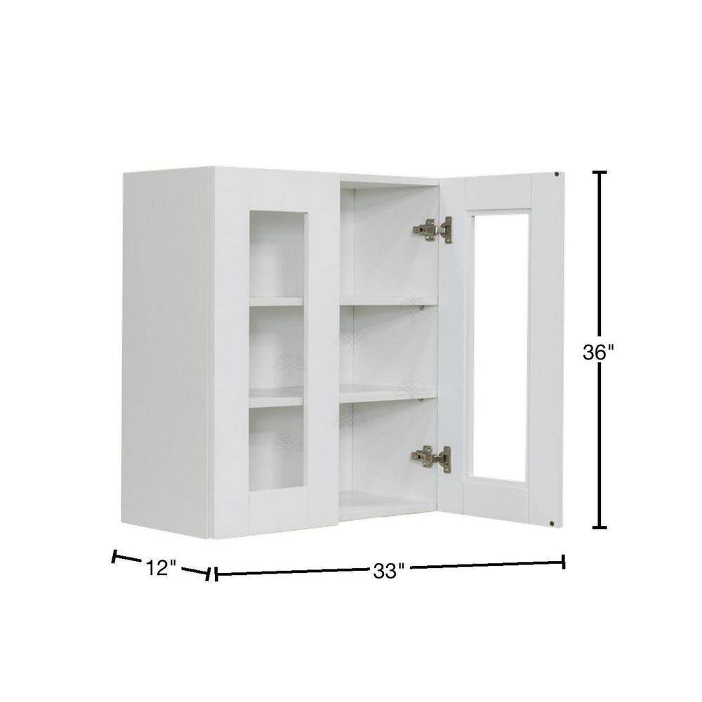 LIFEART CABINETRY Anchester White Plywood Glass Door Stock Assembled Wall Kitchen Cabinet (33 in. W x 36 in. H x 12 in. D)