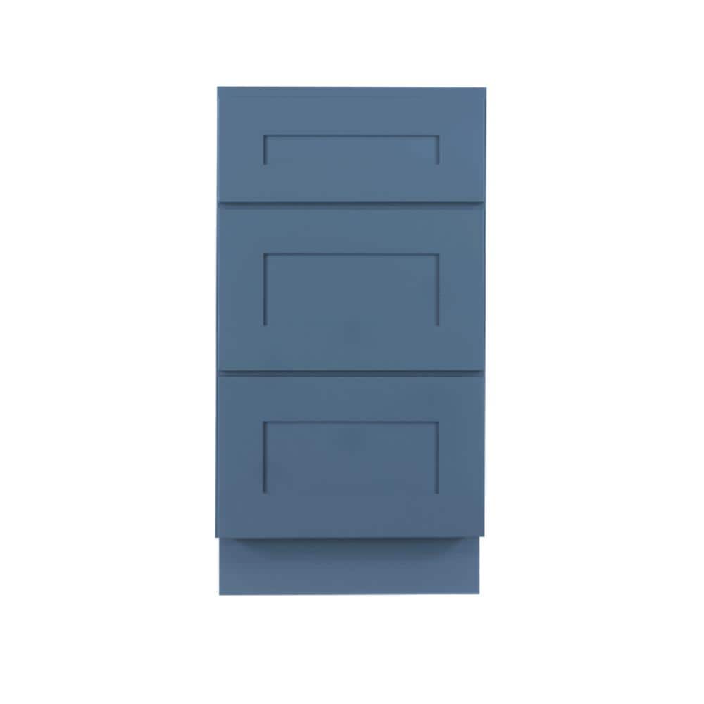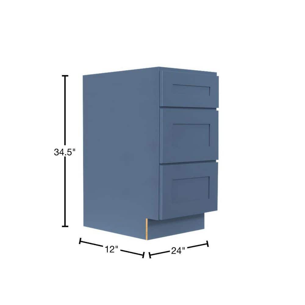 LIFEART CABINETRY Lancaster Blue Plywood Shaker Stock Assembled 3-Drawer Base Kitchen Cabinet 12 in. W x 34.5 in. D H x 24 in. D