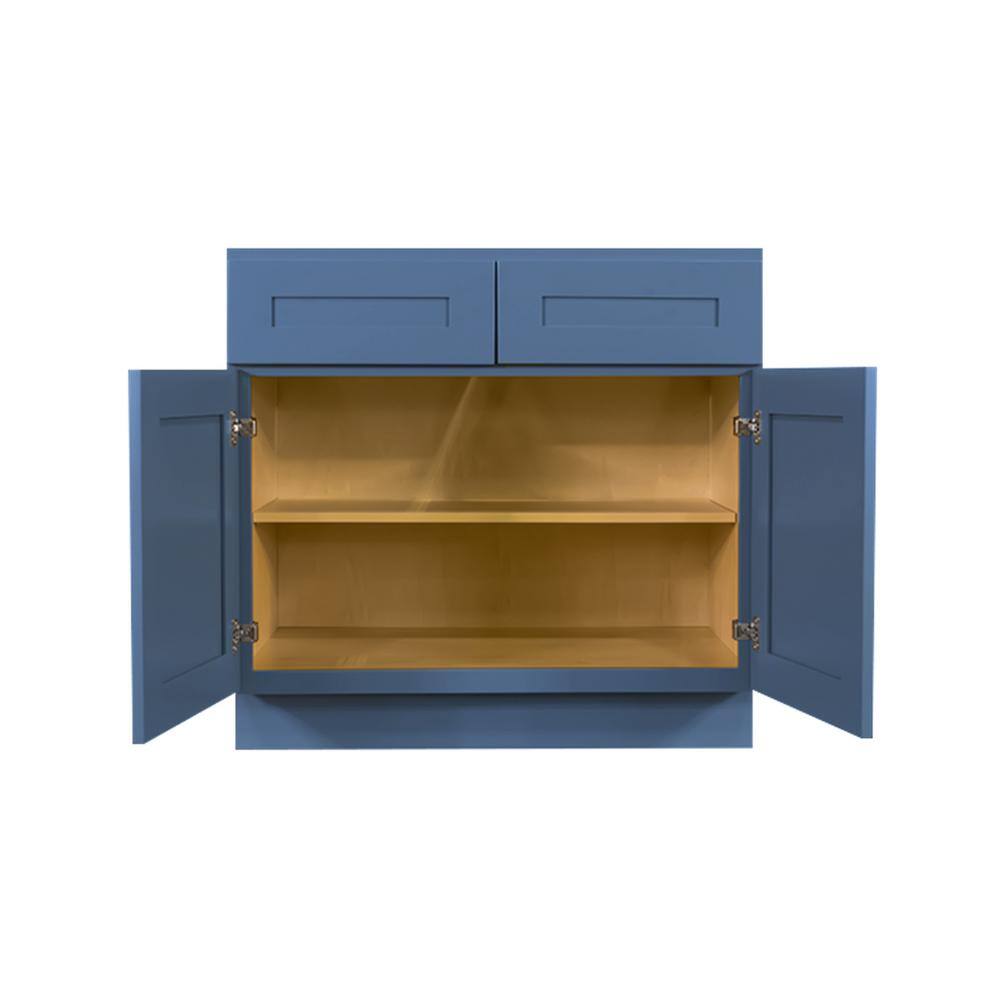 LIFEART CABINETRY Lancaster Blue Plywood Shaker Stock Assembled Base Kitchen Cabinet 33 in. W x 34.5 in. D H x 24 in. D