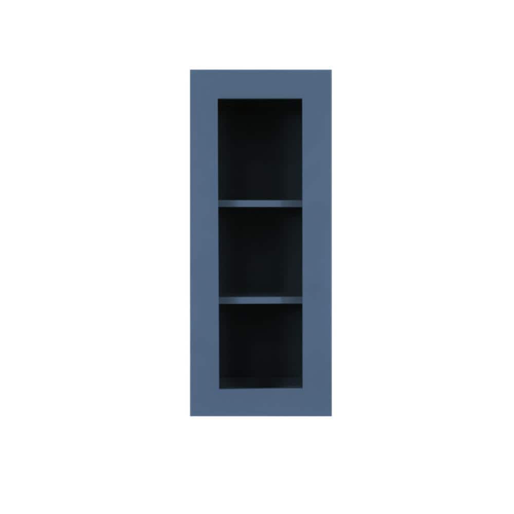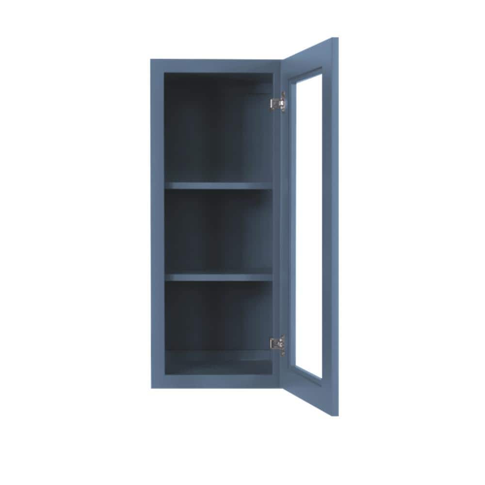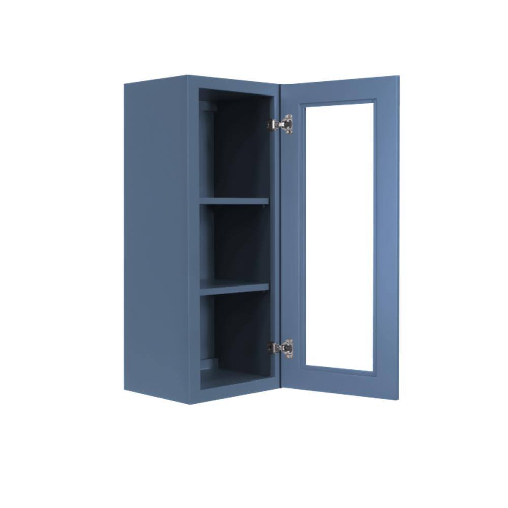 LIFEART CABINETRY Lancaster Blue Plywood Shaker Stock Assembled Wall Glass-Door Kitchen Cabinet 18 in. W x 12 in. D x 30 in. H