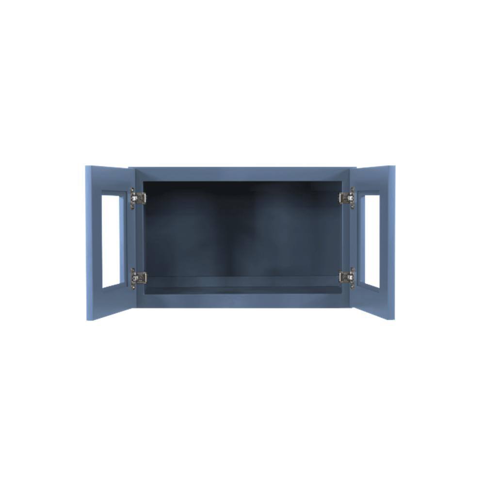 LIFEART CABINETRY Lancaster Blue Plywood Shaker Stock Assembled Wall Glass-Door Kitchen Cabinet 36 in. W x 12 in. D x 15 in. H