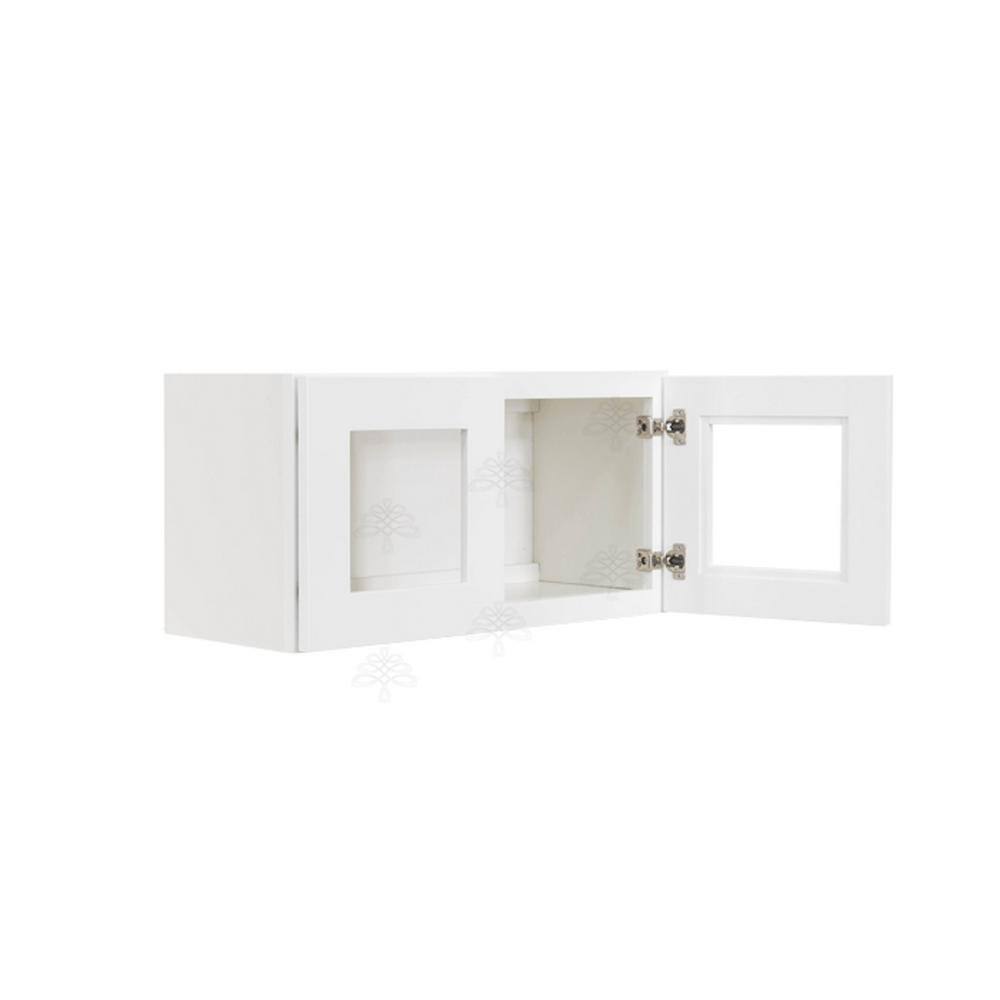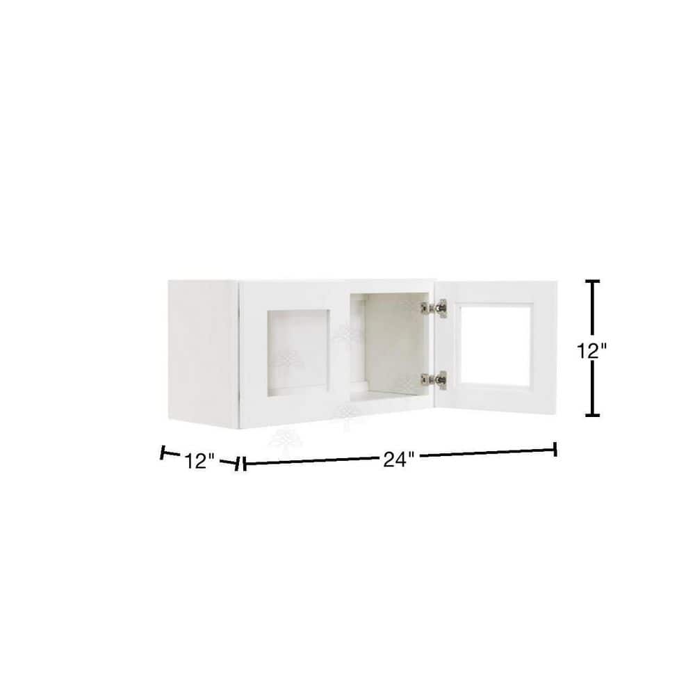 LIFEART CABINETRY Lancaster White Plywood Shaker Stock Assembled Wall Glass Door Kitchen Cabinet 24 in. W x 12 in. H x 12 in. D
