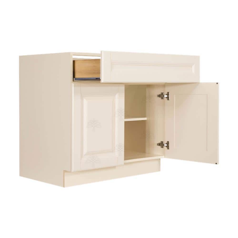 Elevate your kitchen with the LIFEART CABINETRY Oxford Creamy White Base Kitchen Cabinet. Made from premium plywood, this KCMA-certified cabinet offers enduring quality with its eco-friendly, ZERO VOC finish and classic raised panel design. Ready-to-install and versatile for any kitchen layout.