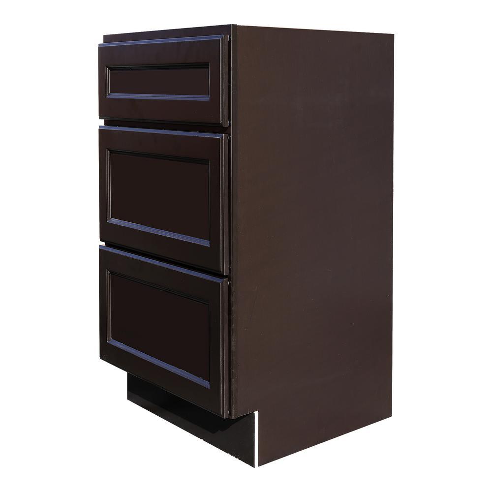 Newport Ready to Assemble 18x34.5x24 in. Base Cabinet with 3-Drawers in Dark Espresso