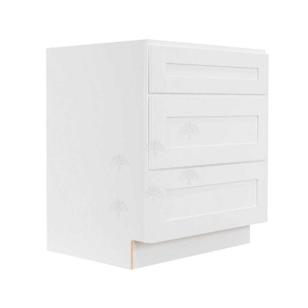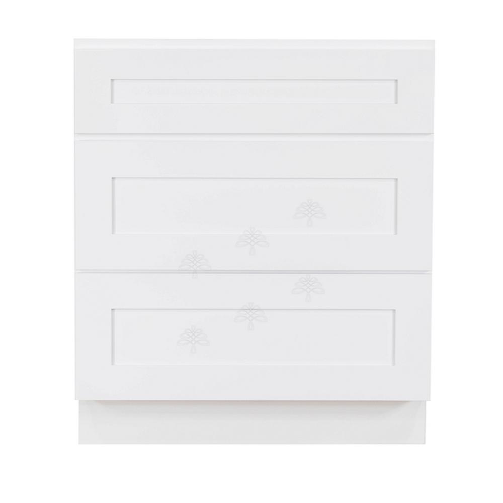 Lancaster Shaker Assembled 36x34.5x24 in. Base Cabinet with 3-Drawers in White
