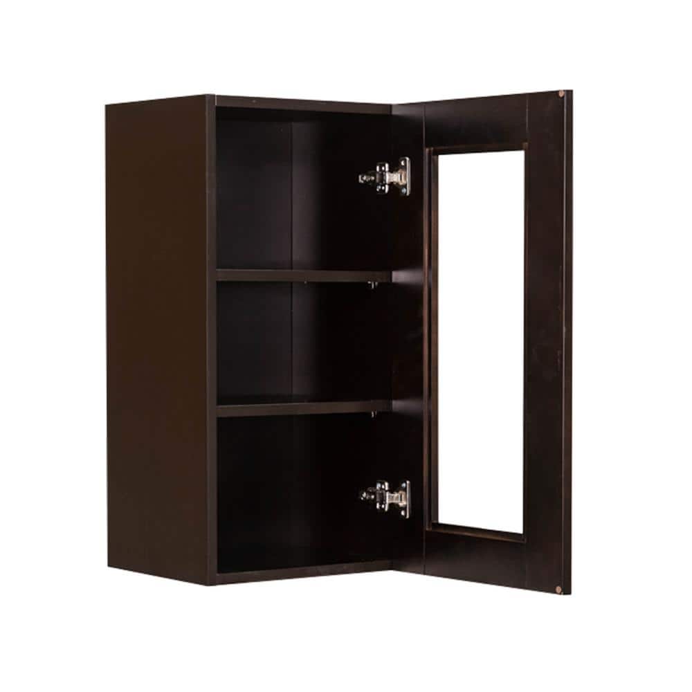 LIFEART CABINETRY Anchester Assembled 15 in. x 30 in. x 12 in. Wall Mullion Door Cabinet with 1 Door 2 Shelves in Dark Espresso
