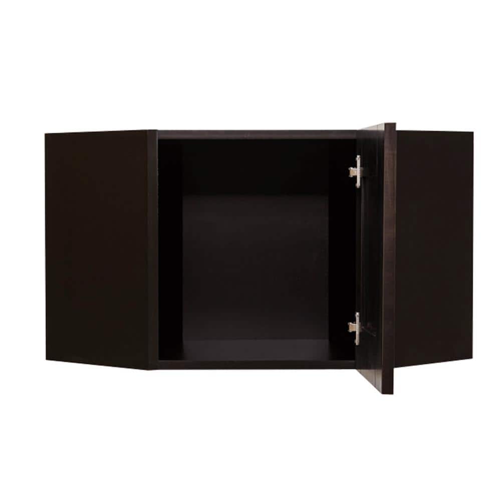 Elevate your kitchen with the LIFEART CABINETRY Anchester Wall Diagonal Cabinet in Dark Espresso. Crafted from premium plywood and solid maple, this eco-friendly cabinet provides a sleek storage solution that fits snugly into any corner while offering smooth, soft-close door operation.