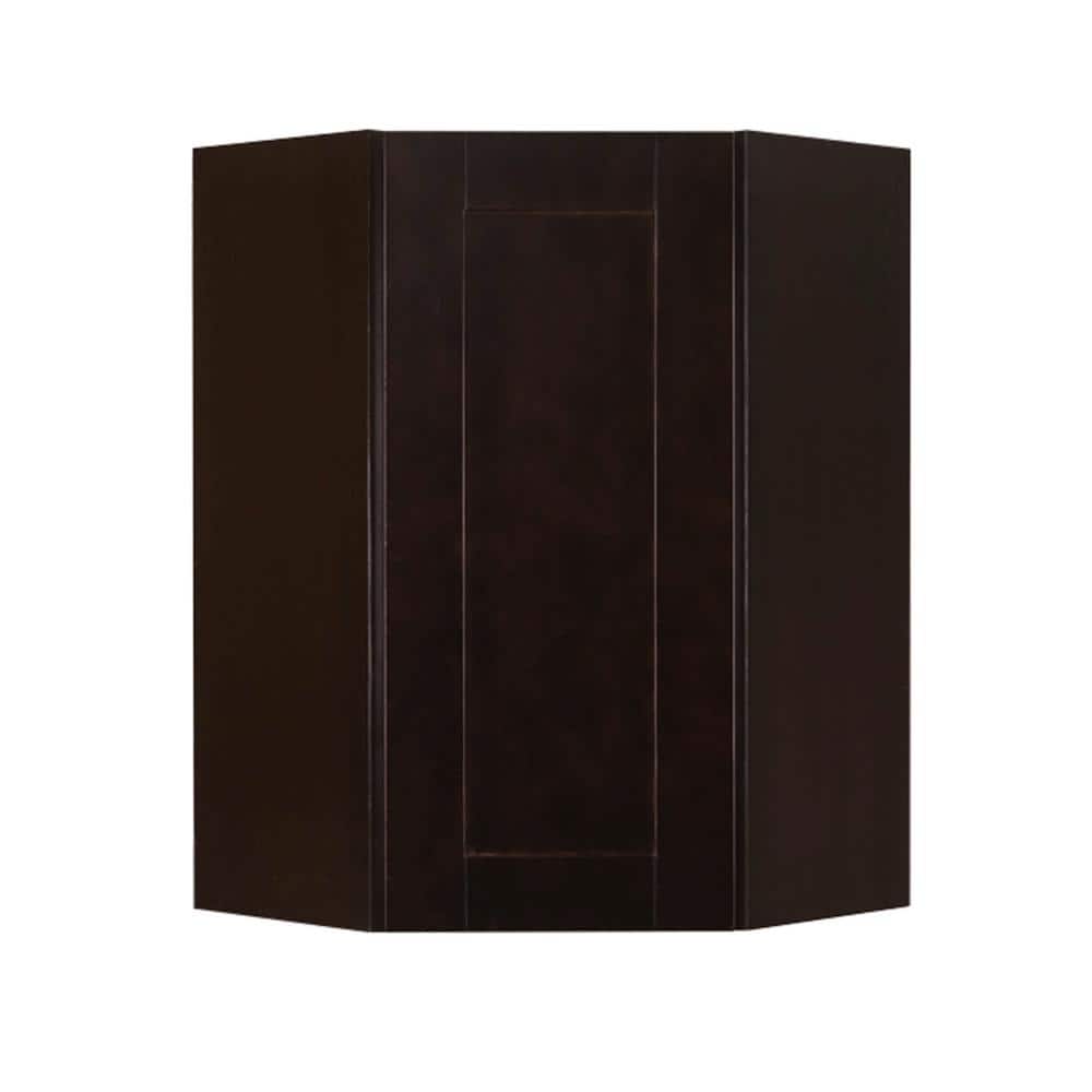 LIFEART CABINETRY Anchester Assembled 24x36x15 in. Wall Diagonal Corner Cabinet with 1 Door 2 Shelves in Dark Espresso