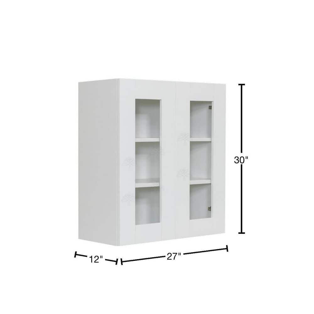 A: The cabinet measures 27 inches wide, 30 inches tall, and 12 inches deep.