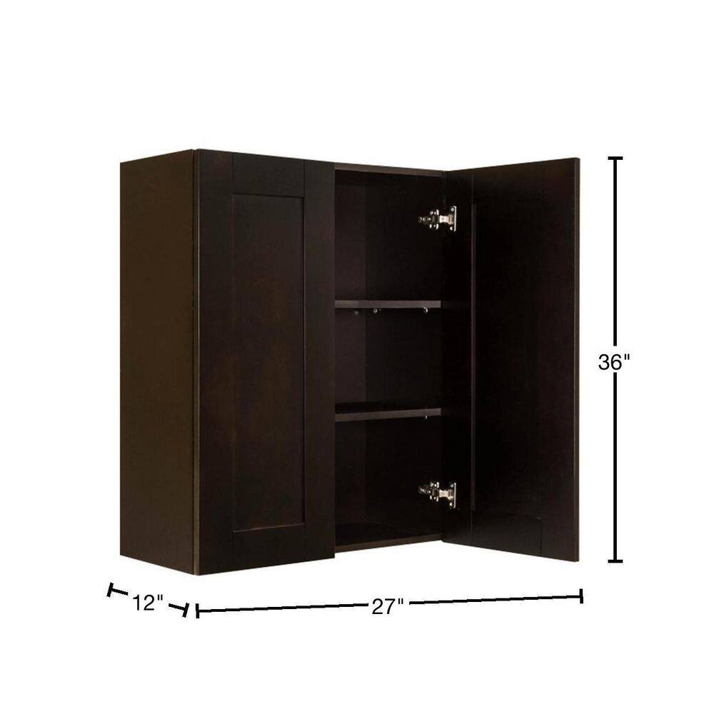 LIFEART CABINETRY Anchester Assembled 27 in. x 36 in. x 12 in. Wall Cabinet with 2 Doors 2 Shelves in Dark Espresso