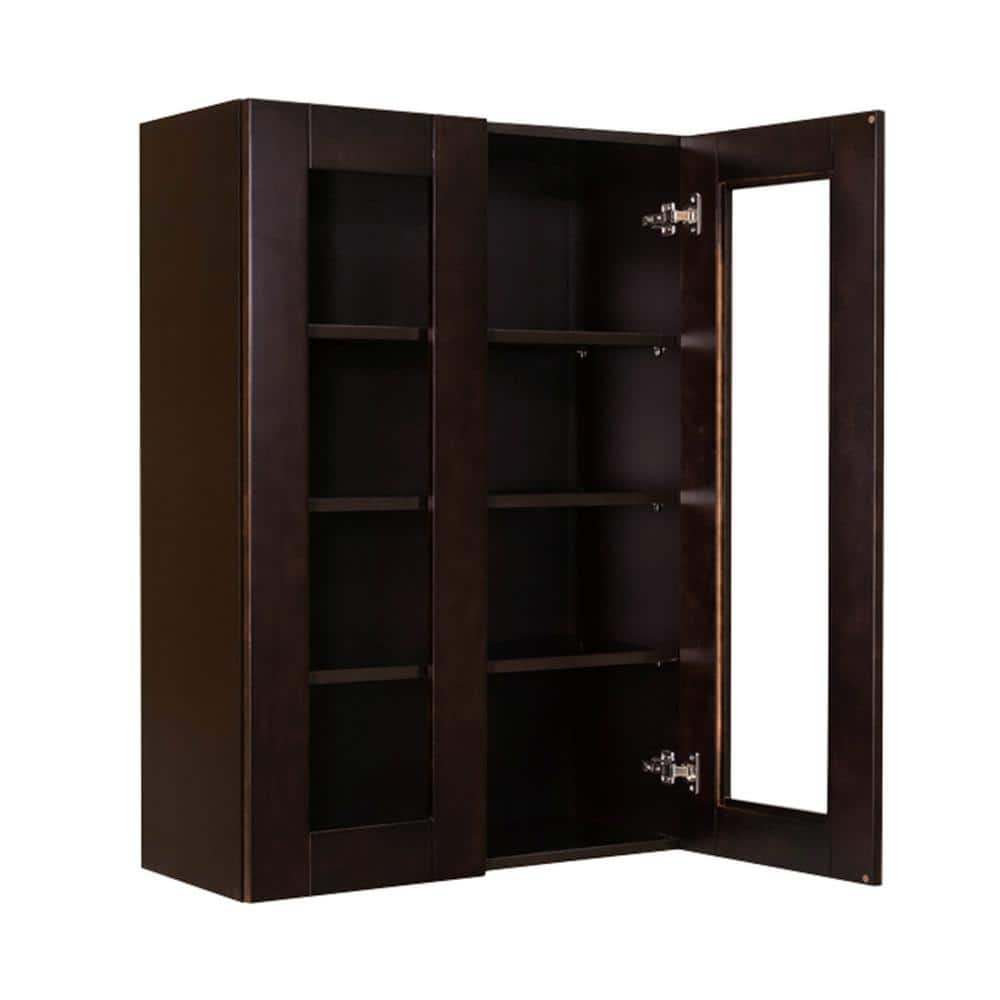 LIFEART CABINETRY Anchester Assembled 30 in. x 42 in. x 12 in. Wall Mullion Door Cabinet with 2 Doors 3 Shelves in Dark Espresso