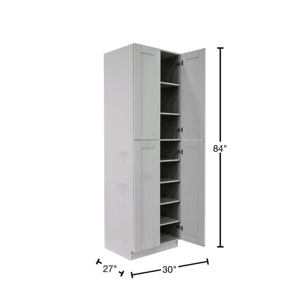LIFEART CABINETRY Anchester Assembled 30 in. x 84 in. x 27 in. Tall Pantry with 4 Doors in Light Gray