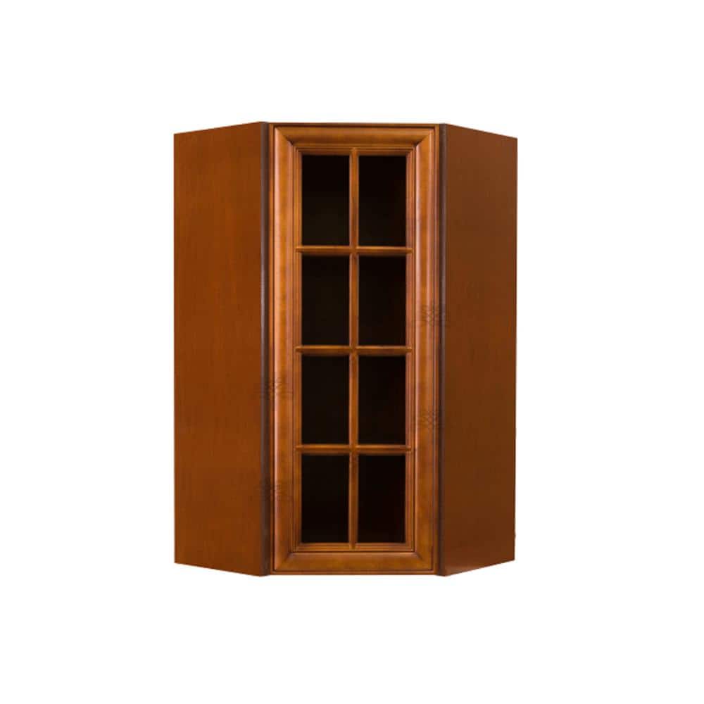 LIFEART CABINETRY Cambridge Assembled 24 in. x 42 in. x 12 in. Wall Diagonal Mullion-Door Cabinet with 1-Door 3-Shelves in Chestnut