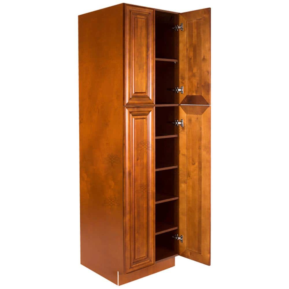 LIFEART CABINETRY Cambridge Assembled 24 in. x 90 in. x 24 in. Tall Pantry with 4 Doors in Chestnut