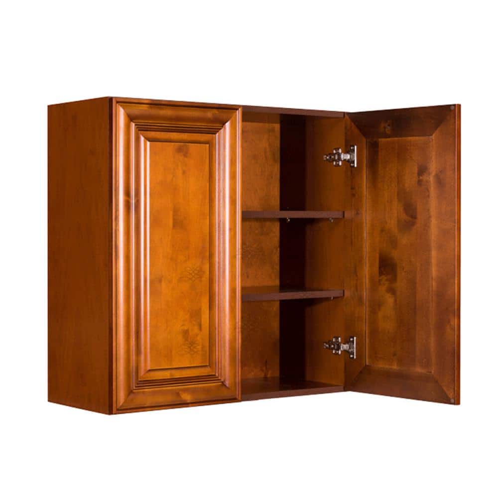 LIFEART CABINETRY Cambridge Assembled 27x30x12 in. Wall Cabinet with 2 Doors 2 Shelves in Chestnut