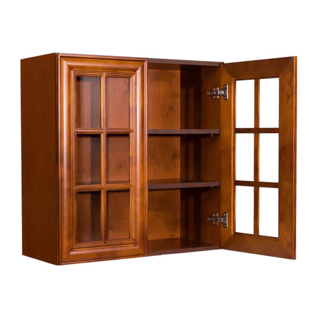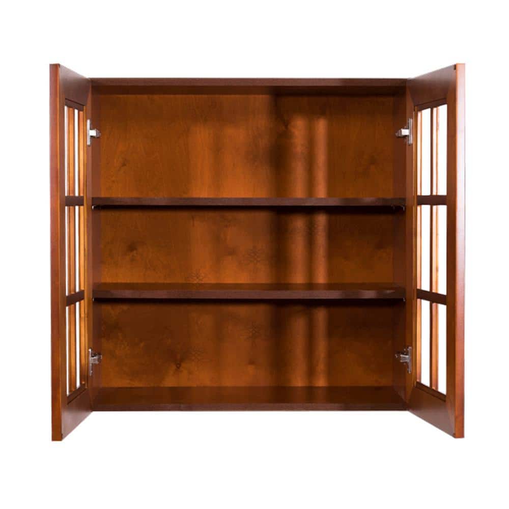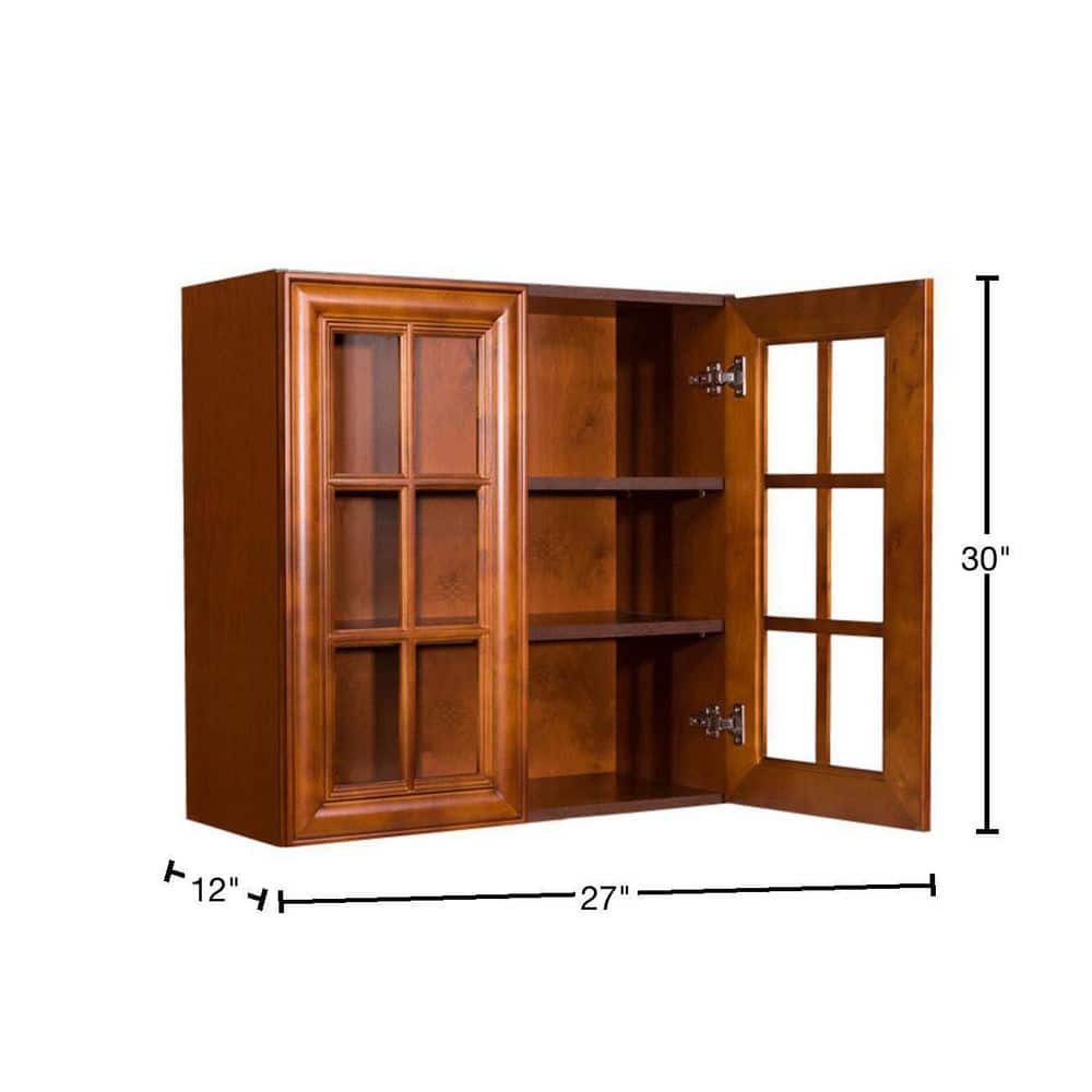 LIFEART CABINETRY Cambridge Assembled 27x30x12 in. Wall Mullion Door Cabinet with 2 Doors 2 Shelves in Chestnut