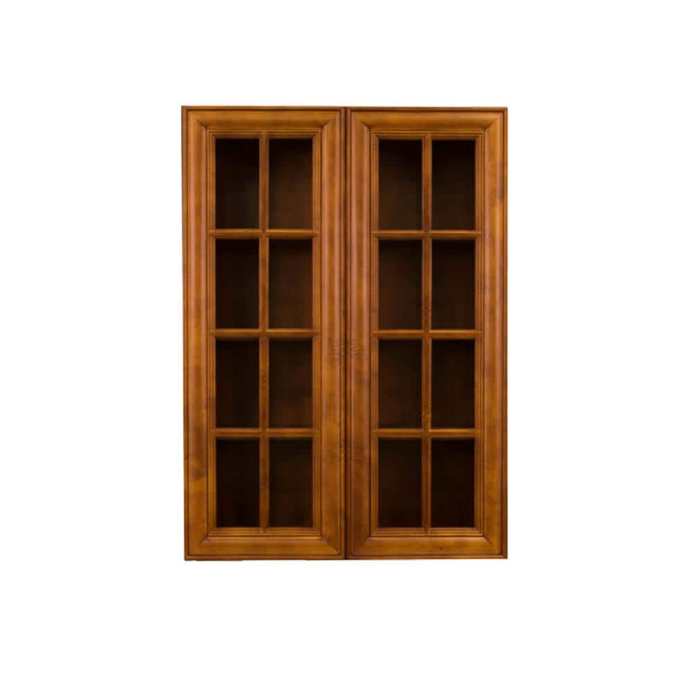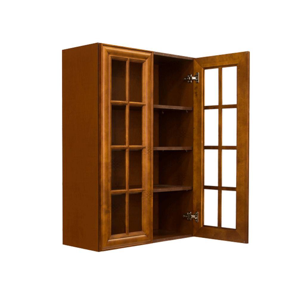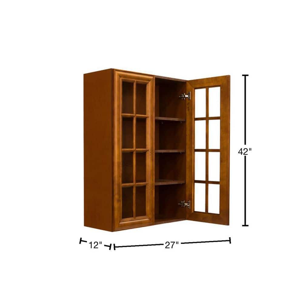 Elevate your kitchen design with the LIFEART CABINETRY Cambridge Wall Mullion Door Cabinet. Crafted with durable plywood and featuring a rich chestnut finish, this cabinet offers both style and functionality with its soft close hinges and customizable glass options.