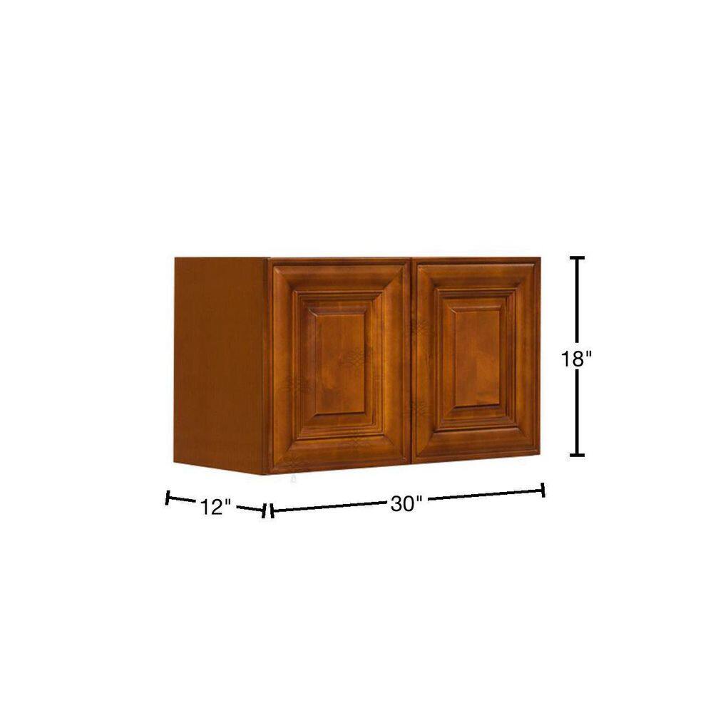 LIFEART CABINETRY Cambridge Assembled 30x18x12 in. Wall Cabinet with 2 Doors No Shelf in Chestnut