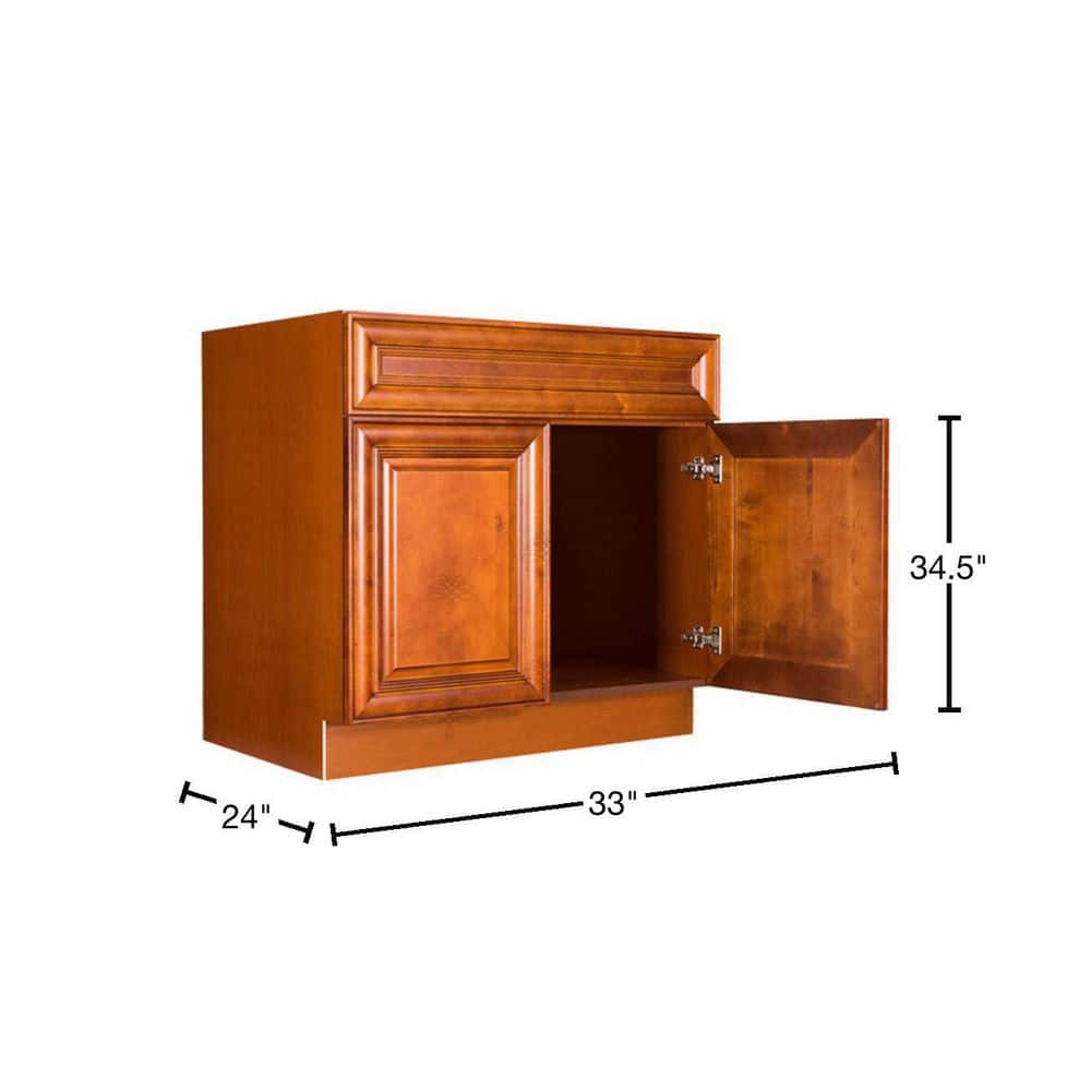 LIFEART CABINETRY Cambridge Assembled 33x34.5x24 in. Sink Base Cabinet with 2 Doors in Chestnut