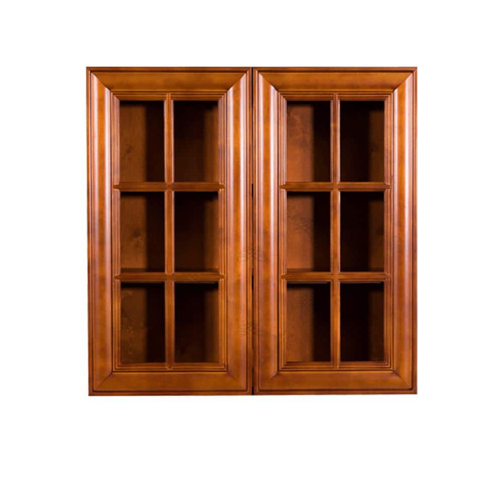 The LIFEART CABINETRY Cambridge Wall Mullion Door Cabinet combines elegance and durability with its rich chestnut finish over plywood construction. Featuring full overlay frameless design and soft-close hinges, this cabinet offers both style and functionality for any kitchen remodel. Certified with zero VOC emissions, it's an environmentally conscious choice.