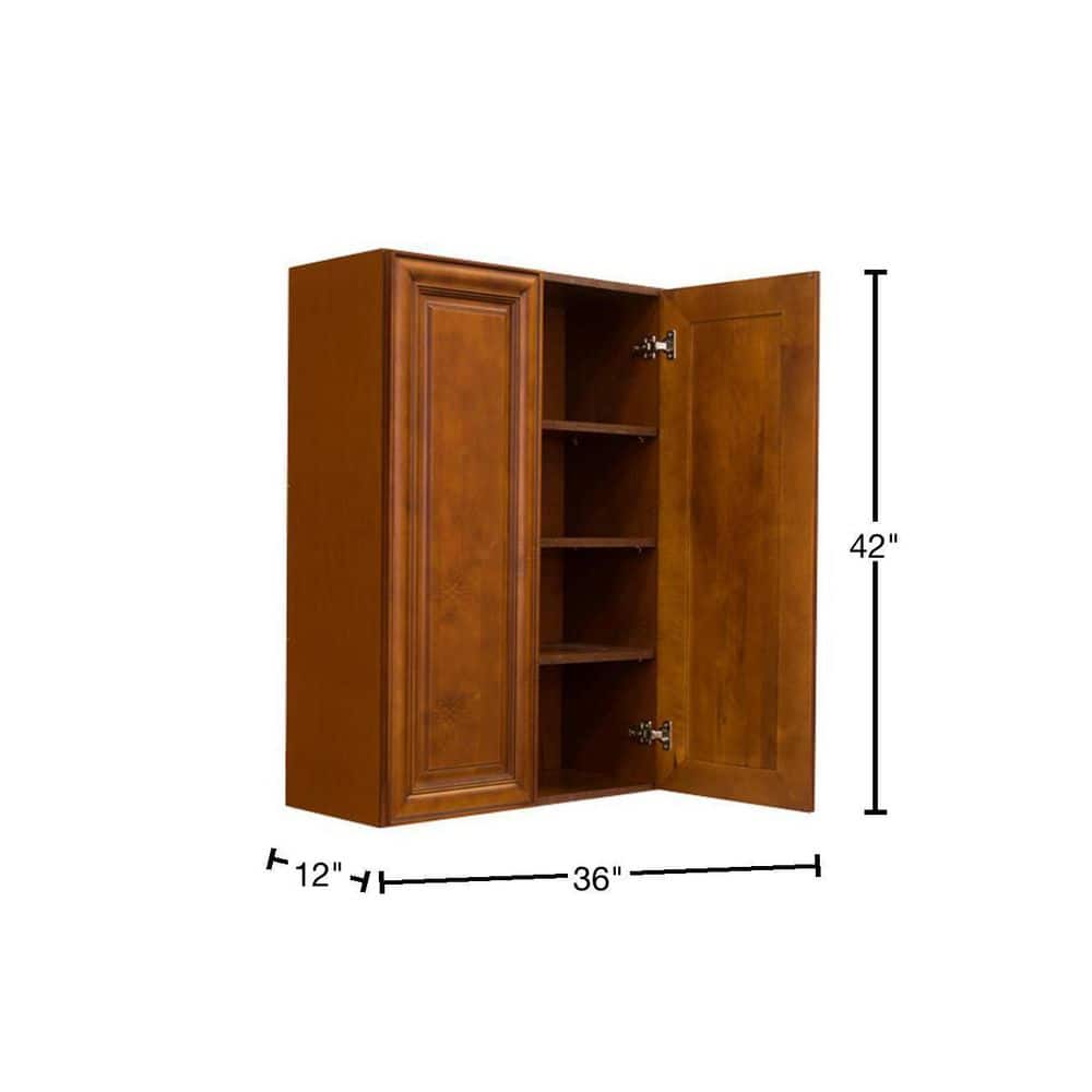 LIFEART CABINETRY Cambridge Assembled 36x42x12 in. Wall Cabinet with 2 Doors 3 Shelves in Chestnut