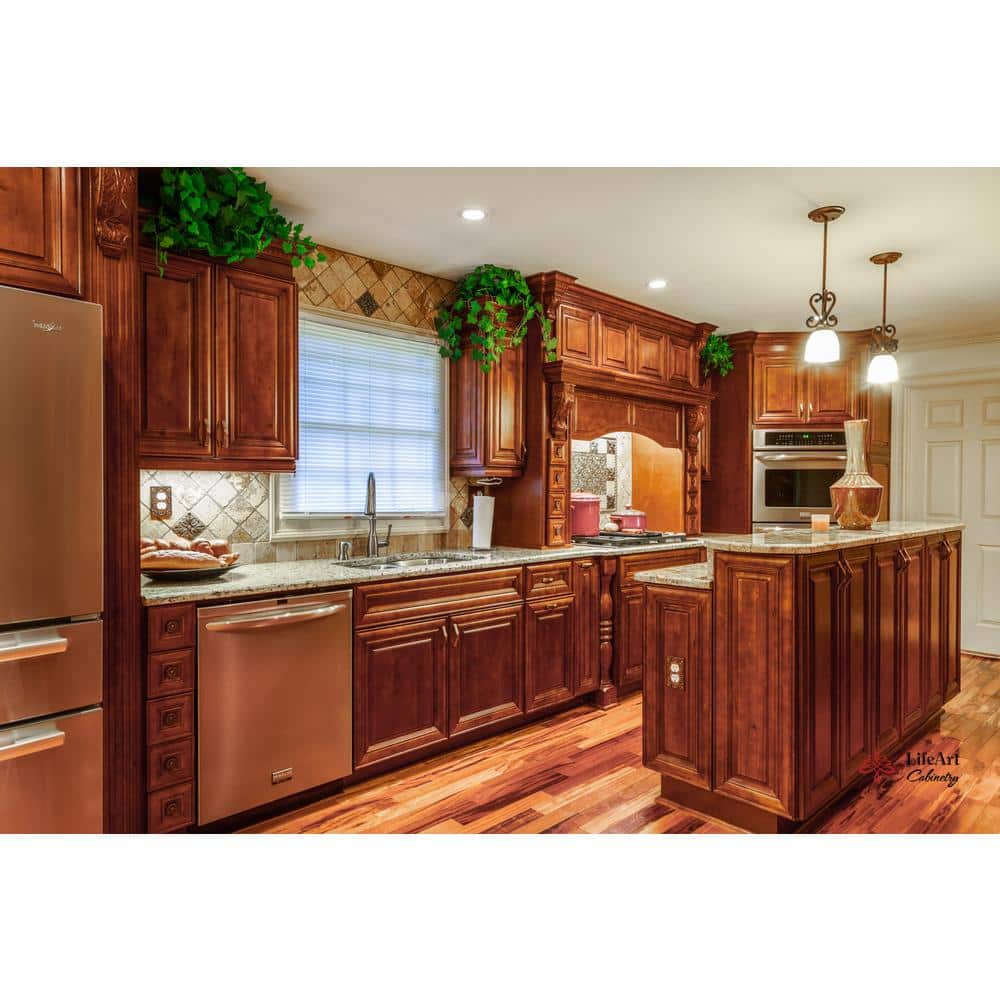 Elevate your kitchen's aesthetic with the LIFEART CABINETRY Cambridge Cabinet, a piece where elegance merges with functionality. Its deep chestnut finish exudes warmth, enhancing any culinary space with its rich hue. Imagine it paired with contrasting marble countertops or crisp whites to highlight its beauty. This cabinet is not just a storage solution; it's a statement piece perfectly fitting of luxurious living.