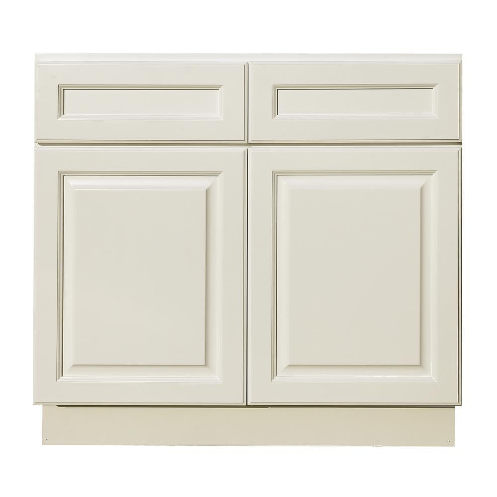 LIFEART CABINETRY LaPort Assembled 33x34.5x24 in. Base Cabinet with 2 Doors and 2 Drawers in Classic White