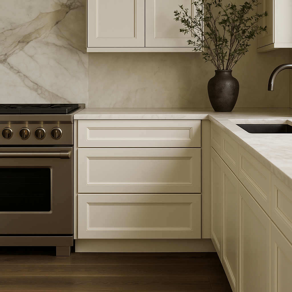 • Soft-Close Drawers: Full extension under-mount glides for smooth operation.