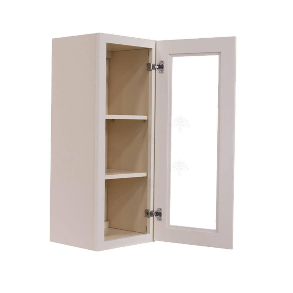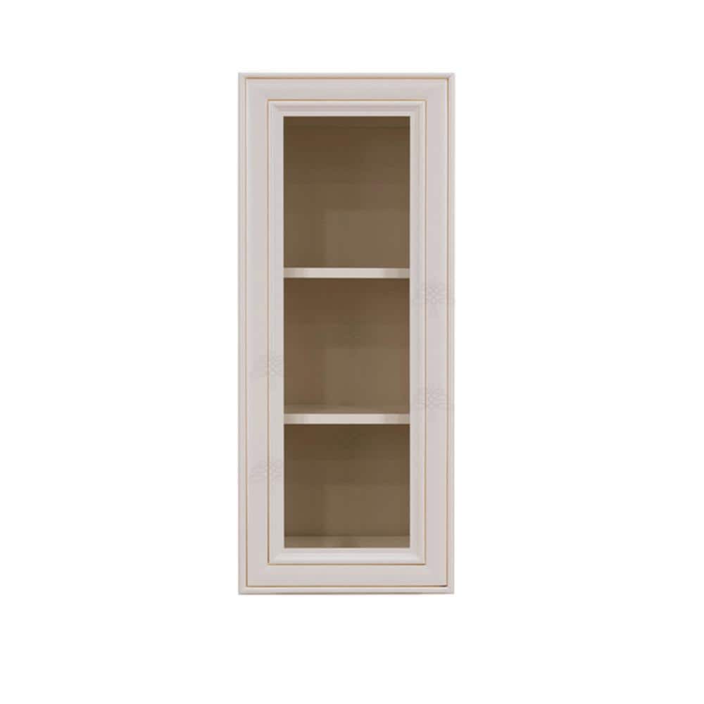 LIFEART CABINETRY Princeton Assembled 15 in. x 30 in. x 12 in. Wall Mullion Door Cabinet with 1 Door 2 Shelves in Creamy White Glazed