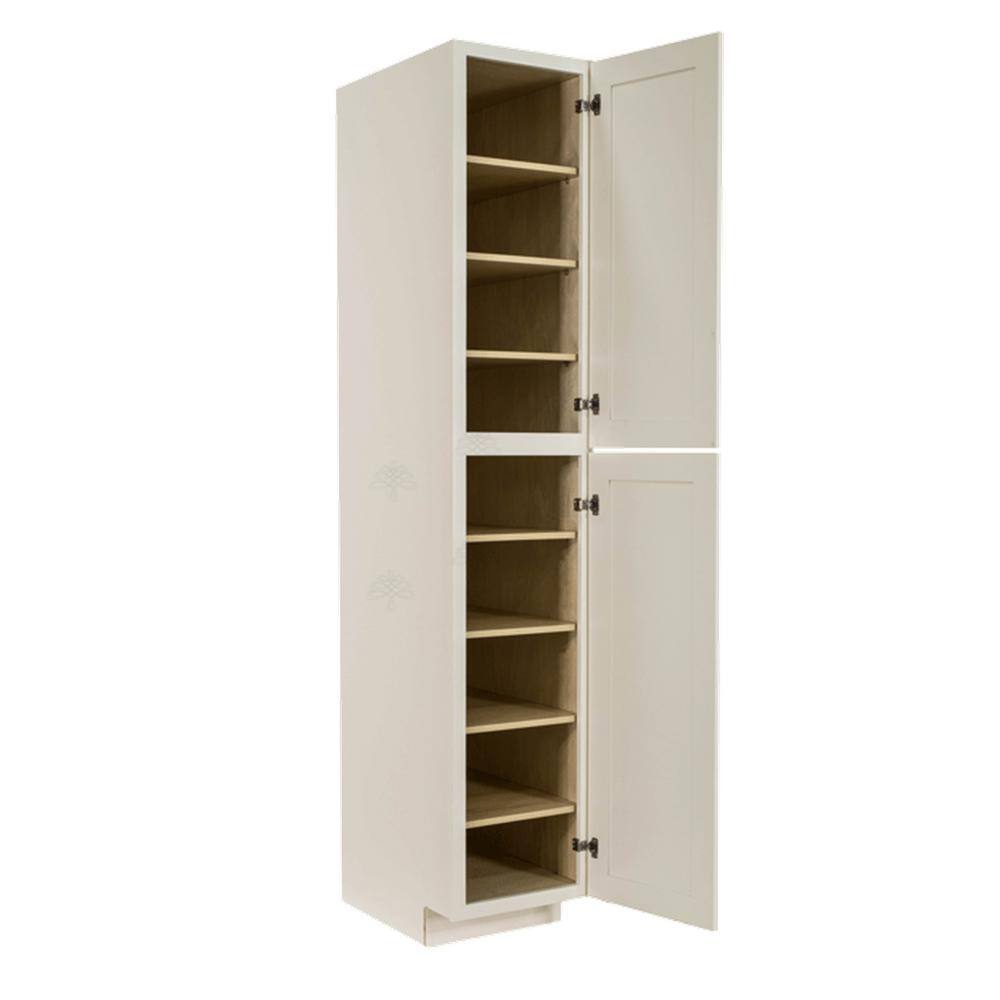 The LIFEART CABINETRY Princeton Assembled Tall Pantry offers a spacious, elegant storage solution for your kitchen. Sporting an off-white finish, this eco-friendly cabinet is crafted from high-quality plywood and solid hardwoods, providing durability and style to any space.