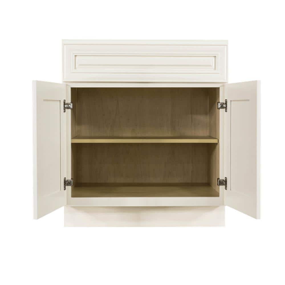 Enhance your home with the LIFEART CABINETRY Princeton Base Cabinet, expertly crafted from durable plywood and featuring soft-close doors and drawers for a sophisticated, noise-free kitchen experience. This 24 in. wide cabinet, coated in a luxurious off-white finish, is both eco-friendly and stunningly versatile, ideal for any room you choose to install it in.