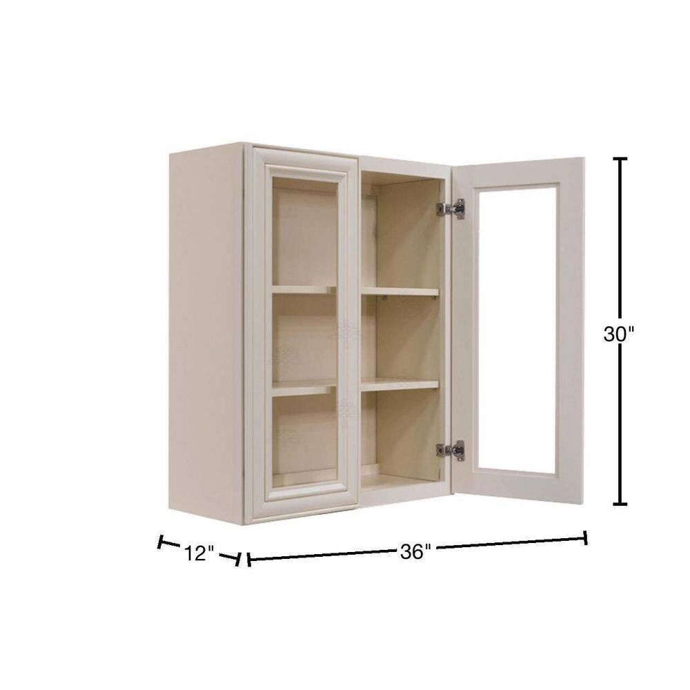 LIFEART CABINETRY Princeton Assembled 36 in. x 30 in. x 12 in. Wall Mullion Door Cabinet with 2 Doors 2 Shelves in Creamy White Glazed