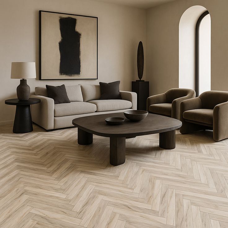Introducing our latest flooring innovation: the Herringbone Navarra Maple. Featuring a 6 MIL thickness and click-lock installation, this vinyl plank flooring is waterproof and easy to install. Transform your space with its modern herringbone pattern for an elegant and durable finish.