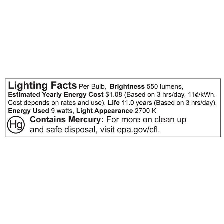 • Contains Mercury: Yes (For more on clean-up and safe disposal visit: epa.gov/cfl)
