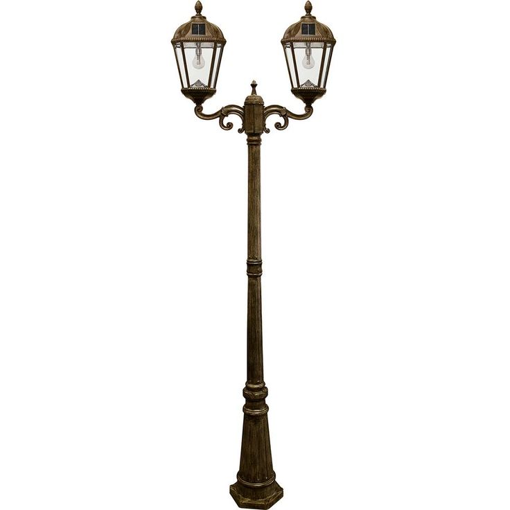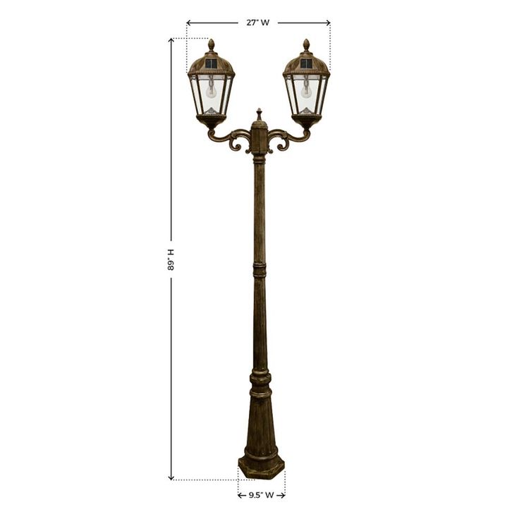The Gama Sonic Royal Bulb GS-98B-D-WB is a double head solar lamp post. It is a rust-resistant, cast-aluminum solar lantern which features an attractive 19th-century lamp design and has now been integrated with our latest revolutionary technology: a patent pending outdoor Solar LED Light Bulb. Standing 89 in. tall solar light with a powder-coated Weathered Bronze finish and beveled glass panes, this solar lamp will add style and distinction wherever it's installed. Easy to install and providing ample light this solar light is the perfect solar lighting solution for your outdoor space. Key Features and Benefits: No Electrical Wiring: It requires no electrical wiring for installation. Fully Solar Powered: Just set our Royal Solar Lamp at your desired location, and let the sun do the rest. High / Low mode switch that extends nightly light duration up to 10 hours of operation on a full charge. Patented cone reflector enhances the glow and multi-directional light dispersal. Integrated Lithium Ion battery pack lasts for approximately 3 years (roughly 1000 charges) and can be replaced for additional 2.5-3 years of operation. Warm White Light: Our Royal solar lamp delivers warm white light, creating the natural look of incandescent light in a solar lamp setting.
