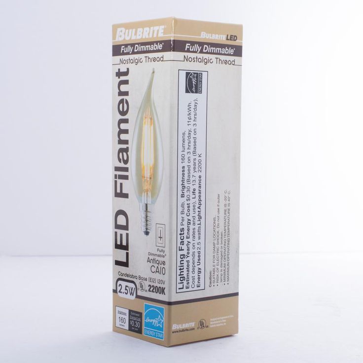 • Included in the box: (4) 2.5-Watt dimmable filaments (CA10) 2200k