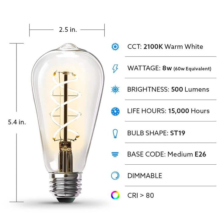 Combine classic style, modern reliability and energy savings with Feit Electric ST19 LED 60-Watt Equivalent Warm White (2100K) 2-Spiral Filament Light Bulb. Our vintage filament bulbs are made with LED exposed filament and wrapped in a clear housing to deliver an elegant antique look and feel. We integrate innovative LED technology with a unique Spiral filament, providing a natural lighting experience for those that want the benefits of LED's and the look of a vintage lighting. Filament LED's will last for years and use just a fraction of the energy of an incandescent.