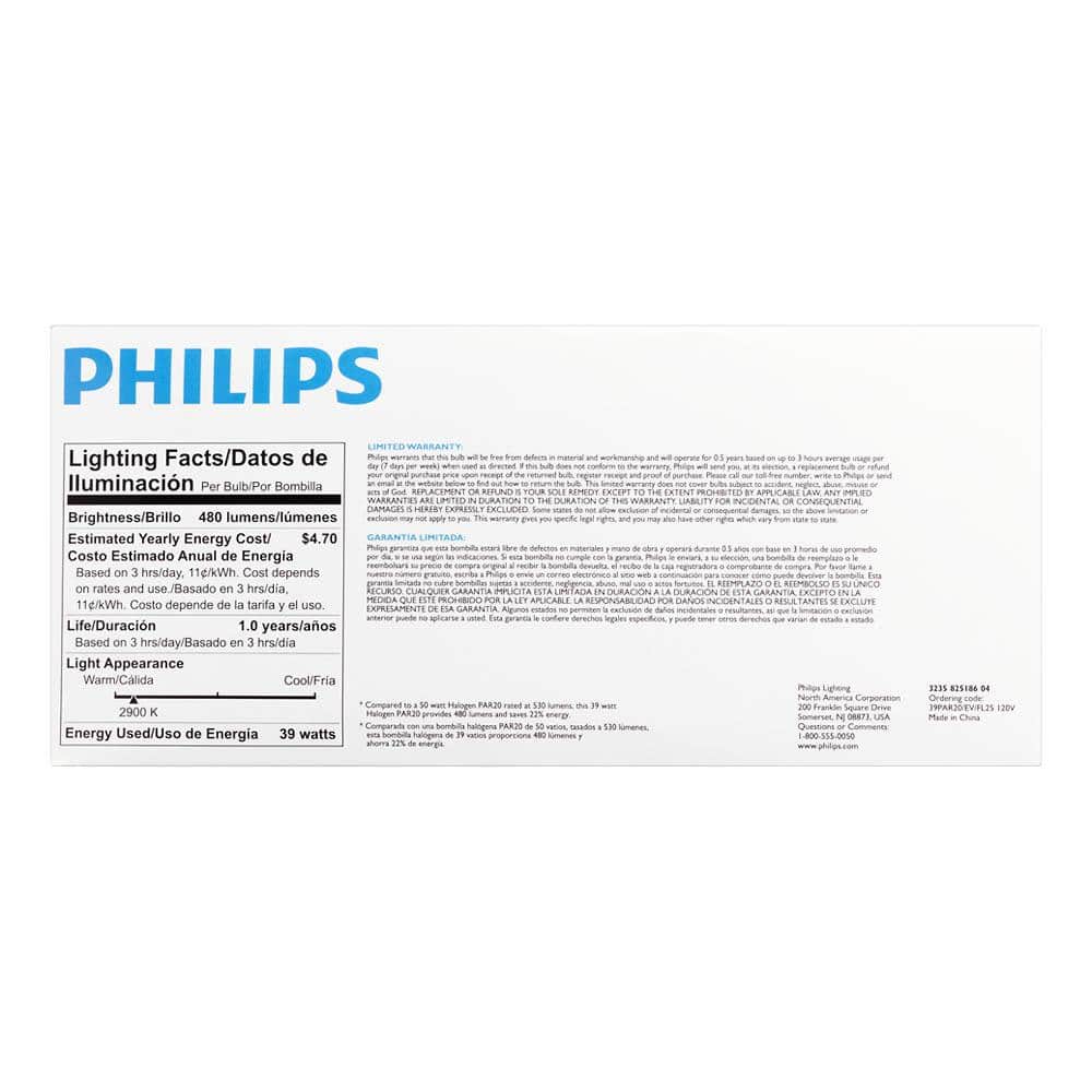 Philips 39-Watt Equivalent Halogen PAR20 Dimmable Flood Light Bulb (4-Pack)