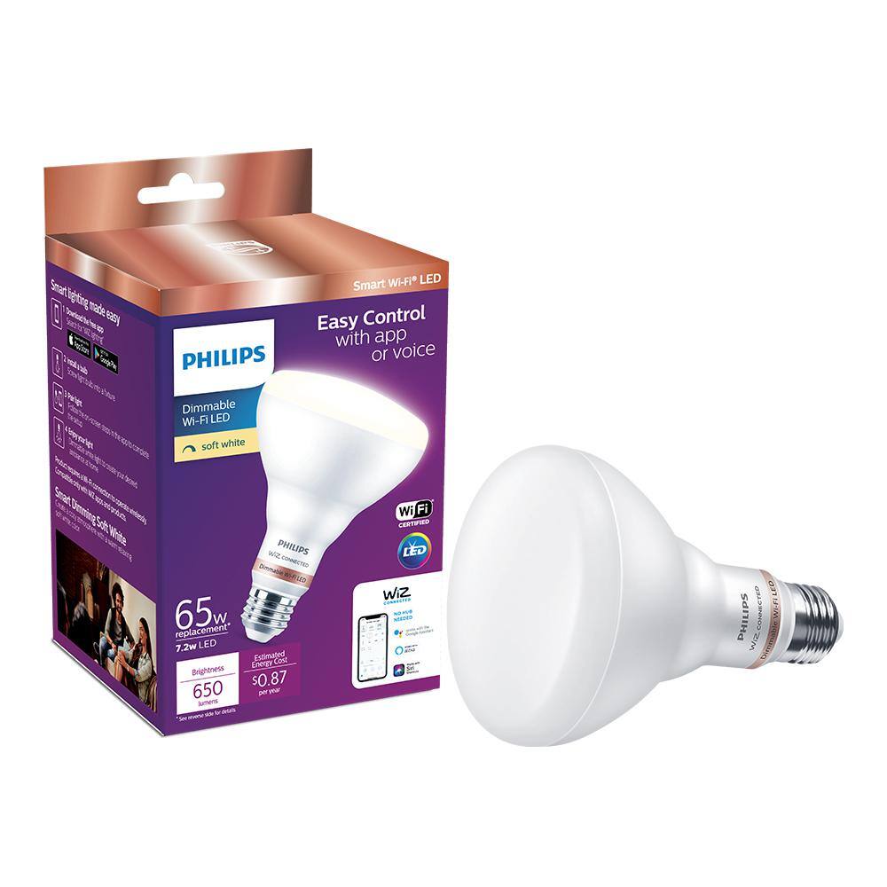 Philips Soft White BR30 LED 65-Watt Equivalent Dimmable Smart Wi‑Fi WiZ Connected Light Bulb (2‑Pack)