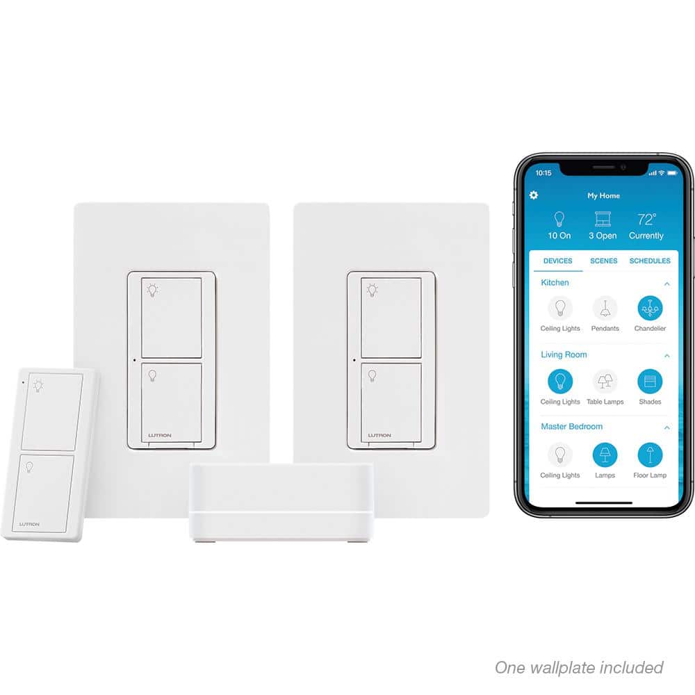Lutron Caseta Smart Switch (2 Count) Starter Kit with Smart Hub and Pico Remote, Neutral Wire Required (P-BDG-PKG2S-HD)