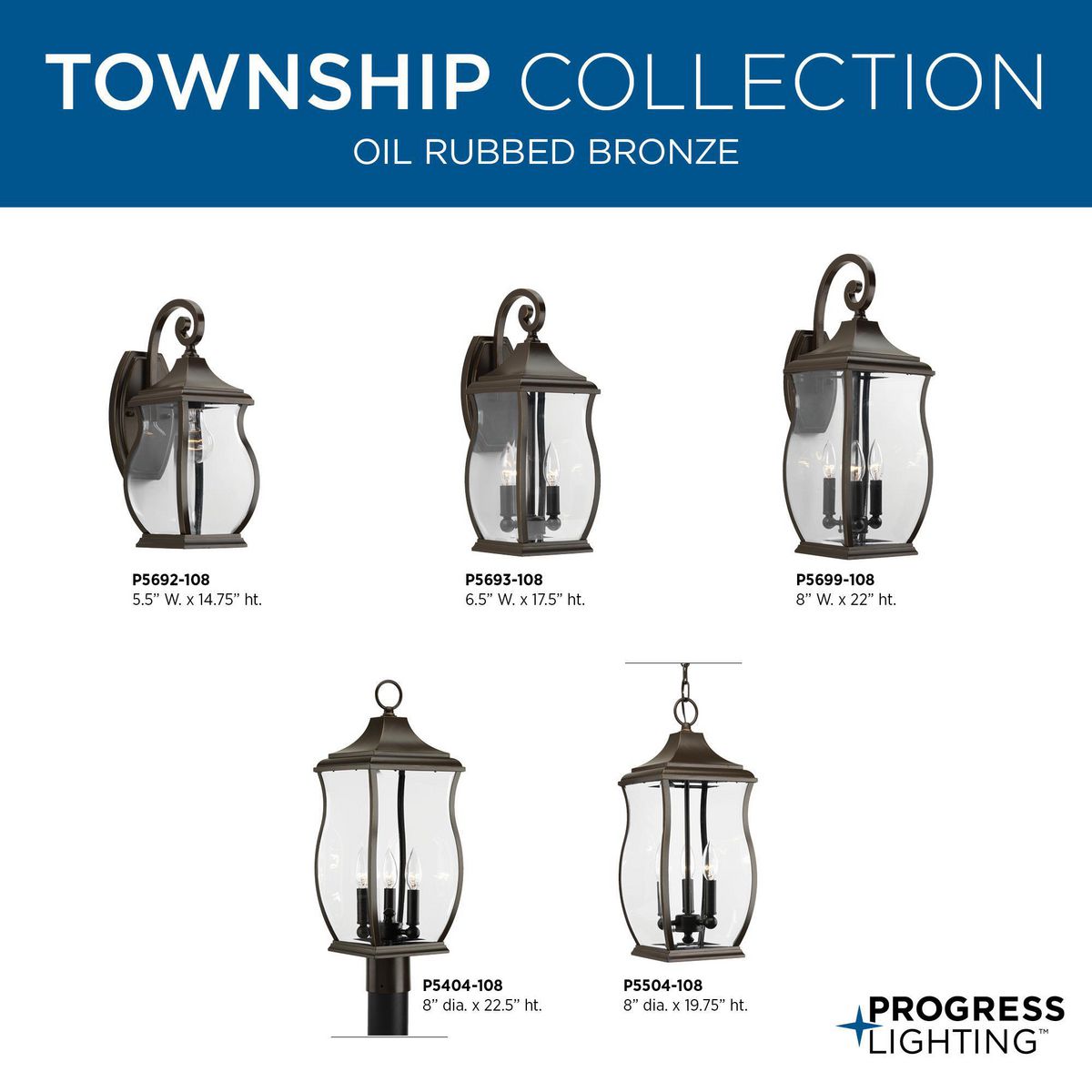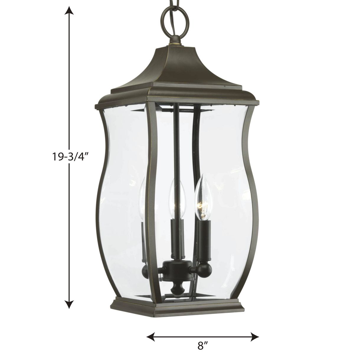 A classic lantern pendant from Progress Lighting’s Township collection featuring an oil rubbed bronze finish and clear beveled glass. Designed for indoor or covered outdoor spaces, it uses three E12 candelabra bulbs and includes a 72-in adjustable chain for varied ceiling heights.