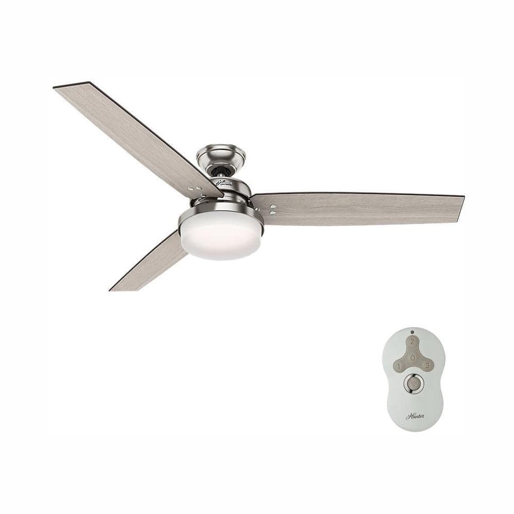 Hunter Sentinel 60-in Brushed Nickel LED Indoor Ceiling Fan with Remote, Integrated Light, 3 Reversible Blades