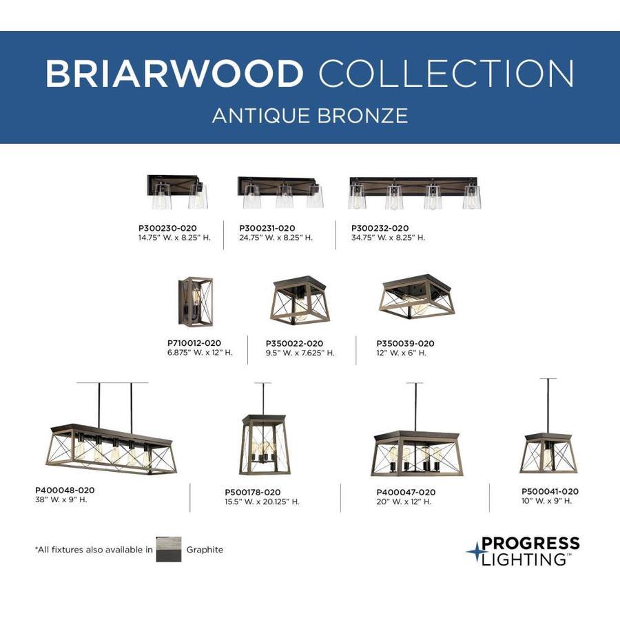 Progress Lighting Briarwood 9.5-in Antique Bronze Farmhouse Incandescent Flush Mount Light