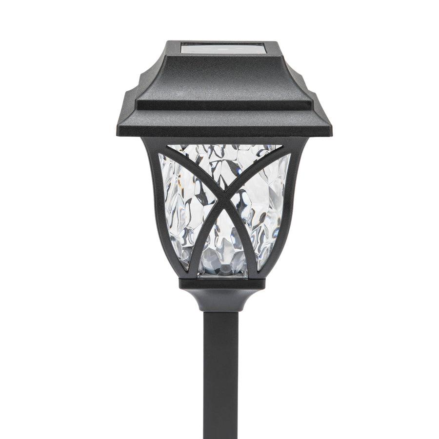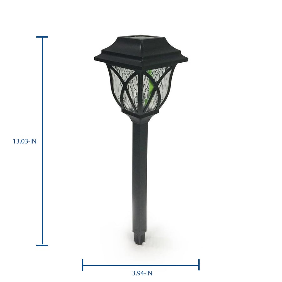 Compact, solar-powered path light delivers warm 3500K illumination to highlight walkways and gardens. Integrated LED and photocell provide automatic dusk-to-dawn operation with up to 8 hours run time on a full charge. Durable plastic construction with clear textured lens casts an elegant pattern on the ground.